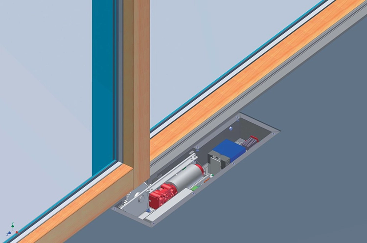 Der unsichtbar unter dem Estrich verbaute Antrieb sorgt für eine hochwertige, ästhetische Optik ohne sichtbare Technik.
