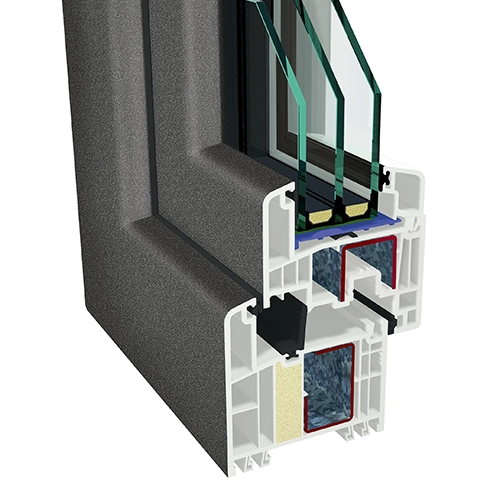 - 5-Kammer-Aufbau in Blendrahmen und Flügel